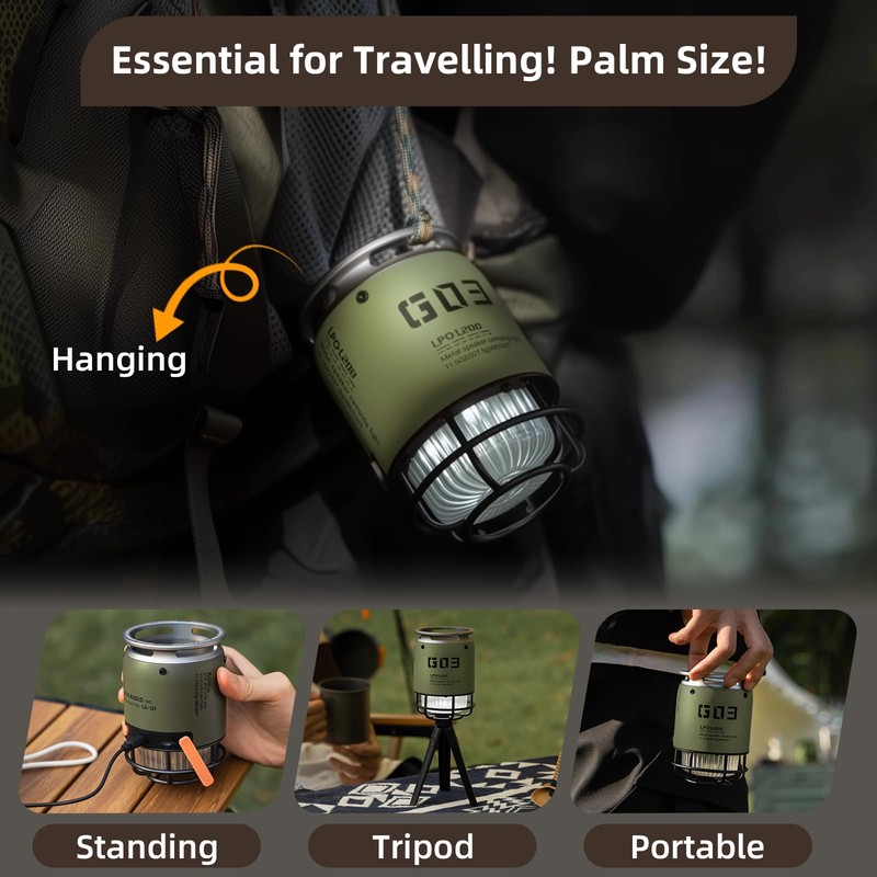 - 【Durable and Stylish Metal Construction】 Designed for rugged outdoor use, this outdoor bluetooth speakers waterproof wireless features a scratch-resistant metal body while also (IPX5) withstanding splashes, spills and light rain, so it's safe to use at the pool or beach. Our outdoor camping speaker light last more than 3 times longer than ordinary plastic speakers.The camping lantern comes with a detachable tripod to meet the needs of desktop/tent/beach and other multi-scenario placement.