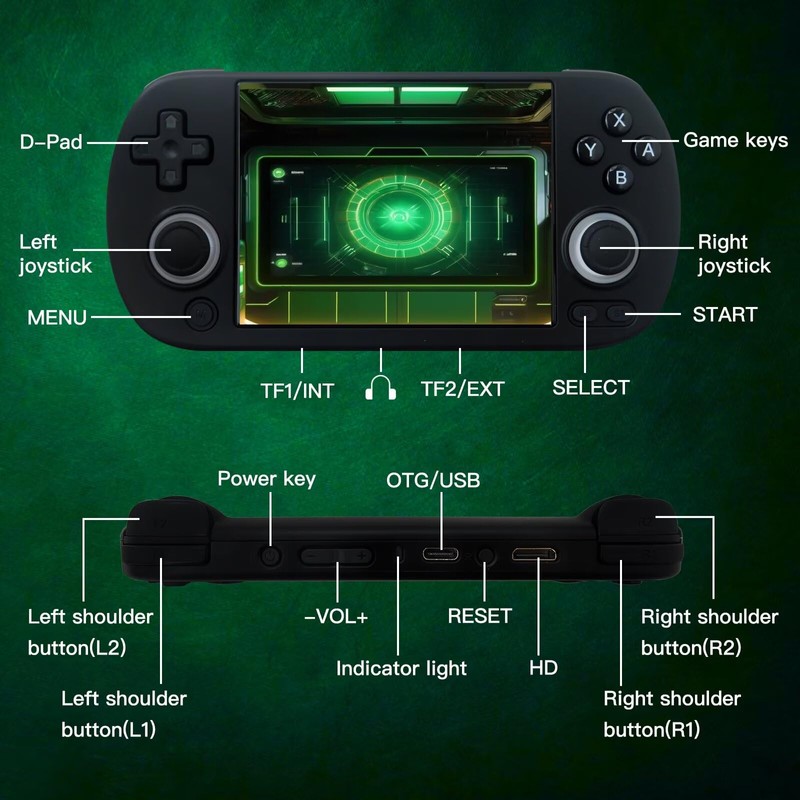 - Stunning Visuals: Enjoy a captivating gaming experience on the 4-inch IPS full viewing angle display with OCA full fit. The high-resolution 640*480 screen of the rg40xx h ensures crystal-clear visuals and vibrant colors, bringing your games to life