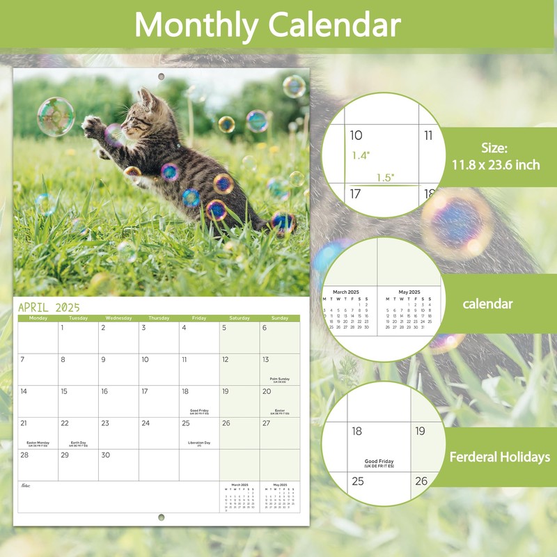 - 😺 12 DIFFERENT CUTE KITTENS PHOTOS - The 2025 wall calendar calendar is easy to hang on wall. Each Month displays full-color photograph of lovely kittens. Hanging 2025 calendar planner is ideal near your office desk, home