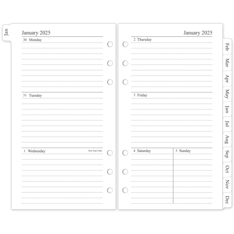 2025 Weekly & Monthly Planner Refill, A6 planner Inserts with Monthly Tabs, Size 3, 3.8"x6.8", 6-Hole Punched