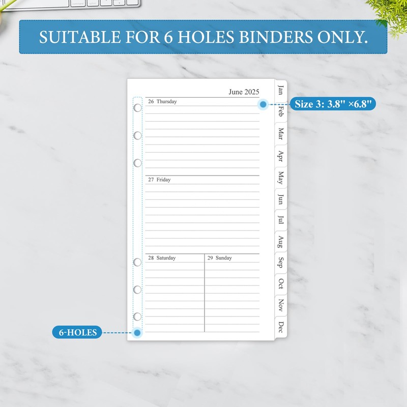 2025 Weekly & Monthly Planner Refill, A6 planner Inserts with Monthly Tabs, Size 3, 3.8"x6.8", 6-Hole Punched