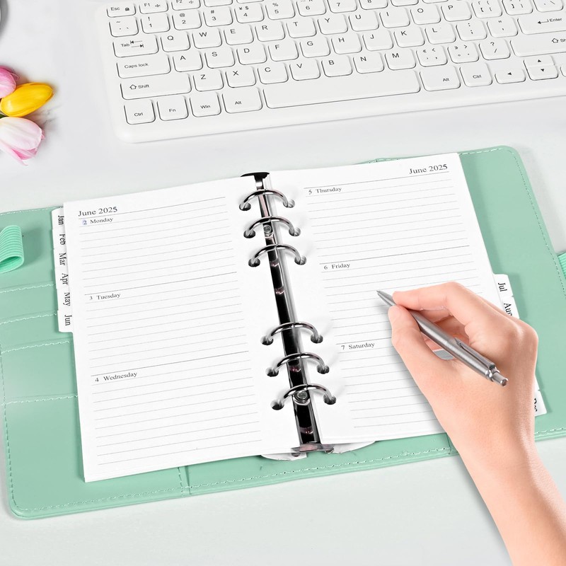 - 12 Month 2025 Planner Overview: Refill covers 12 months, monthly planning calendar pages. Each month has an index tag so you can find it quickly.