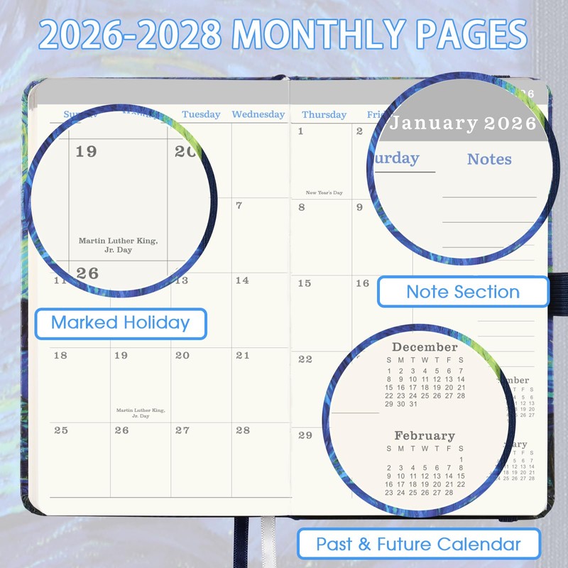 - 36 MONTHS PLANNER/CALENDAR - Pocket planner covers 36 months from January 2026 – December 2028 which is perfect for long - term planning. Small, mini and compact, which measures at approximately 3.8" × 6.3", keep track of important dates, deadlines, special events, and more.