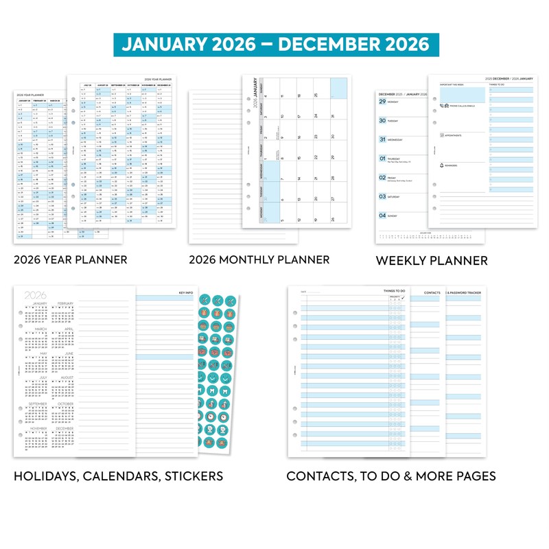 - 2026 Diary & Notes monthly / weekly organiser refill