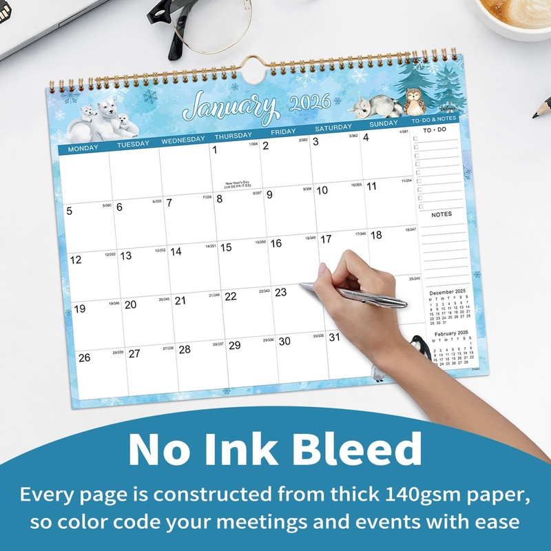 - Industrial-strength twin-wire coils keep your wall calendar 2026 securely mounted for years.