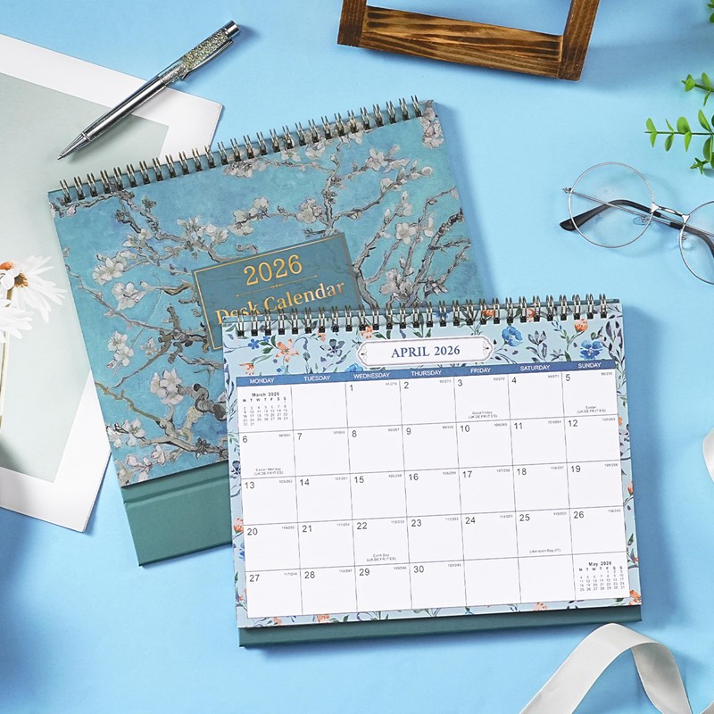 2026 Calendar - Desk Calendar 2026 from Jan. to Dec. 2026, Calendar 2026 with Holiday Reminders & Large Unruled Blocks, 25 x 20.5 x 8 cm, Almond Blossom