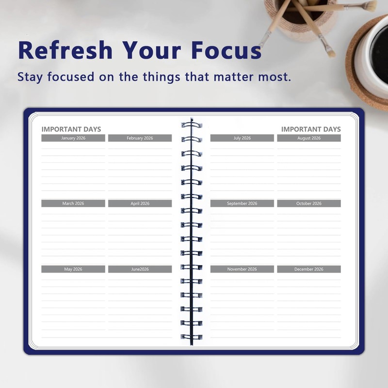 - Weekly Management - Each weekly page of a5 diary 2026 week to view has ample lined writing space for your appointments, activities or events, etc. You can make a to-do list and tick off when you're done, which will keep you focused and work toward your goals.