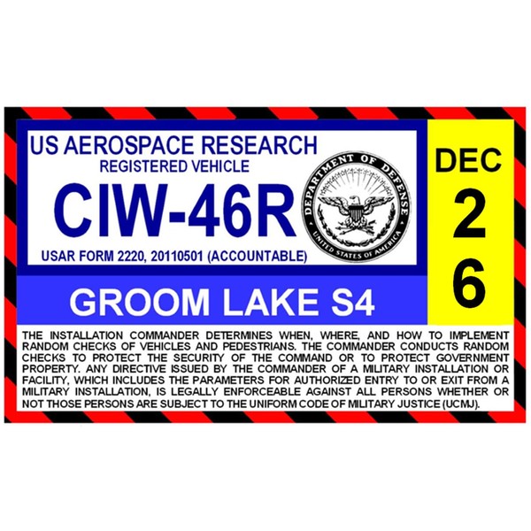 2026 Groom Lake AFB Area S4 Parking Decal (Area 51)