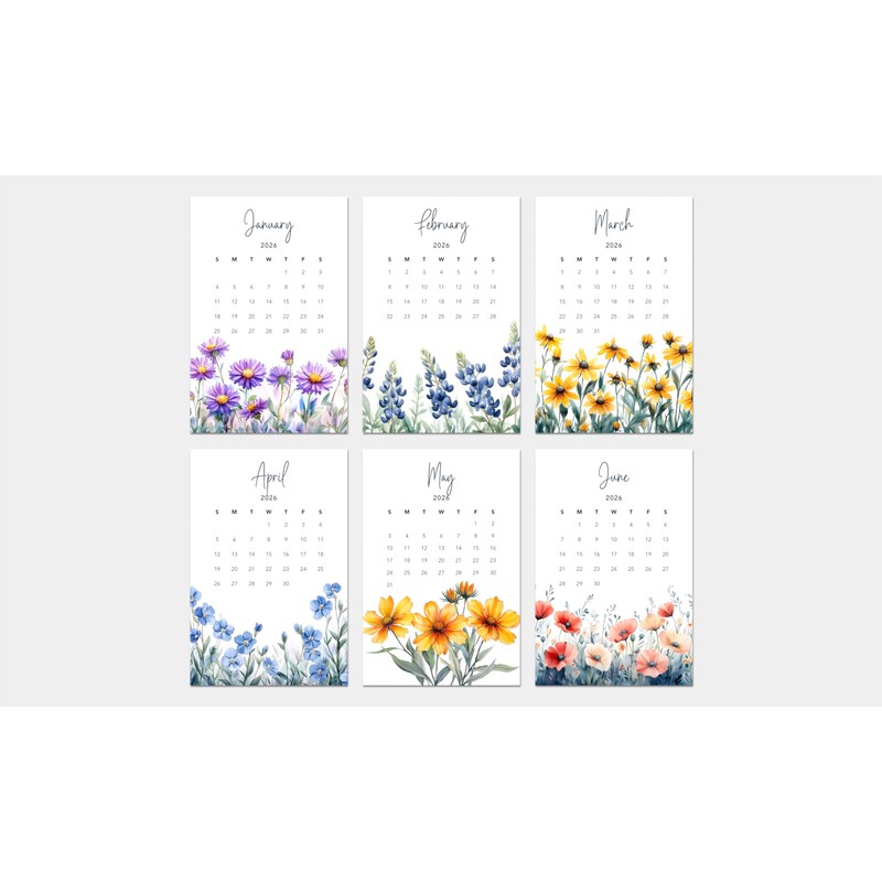 2026 Monthly Office Desk Calendar - Wildflowers - Watercolor Style - Annual 12 Month - 4” x 6” Cards – Calendar Card Refill