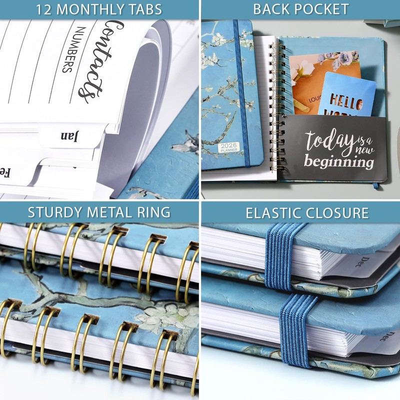 - 🌴 UNIQUE DESIGN - The high quality hardcover of this planner 2026 has soft tactility, and the strong metal and lay-flat spiral binding gives this planner a vibrant look to light up your day. Moreover, the back pocket can keep your loose items like plane tickets, cards, papers and more.