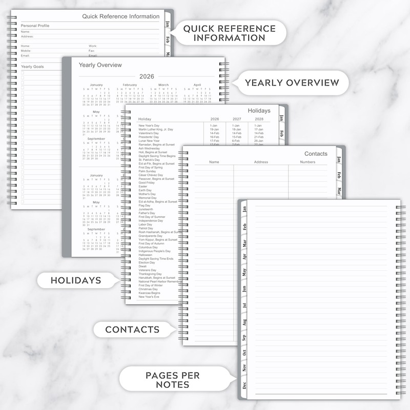- Weekly Layout - The 2026 planner's weekly spreads provide ample room to carefully plan each day's commitm2ents.You can schedue meetings, jotting down to-dos, and monitoring ongoing projects through the neatly organized weekly format that keeps your agenda perfectly visible.