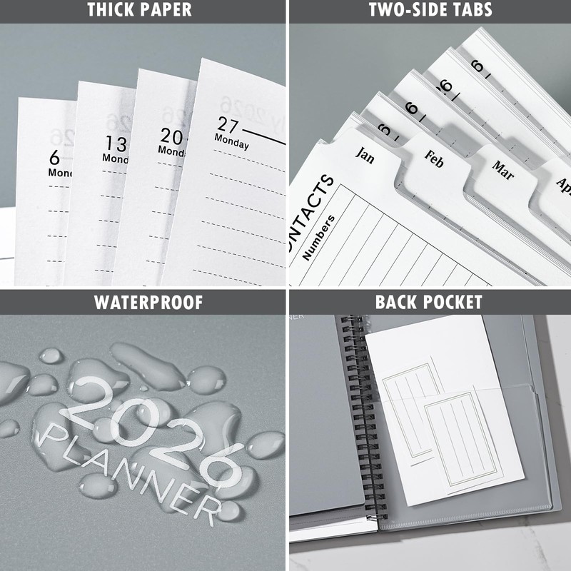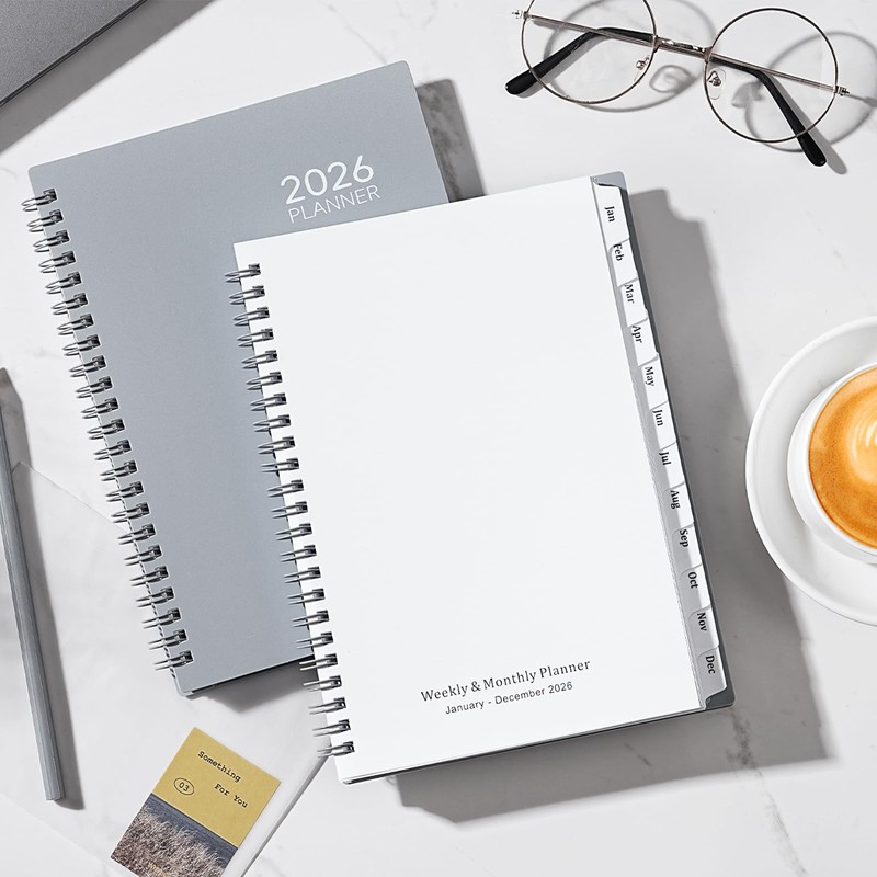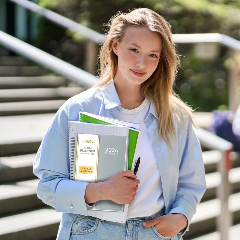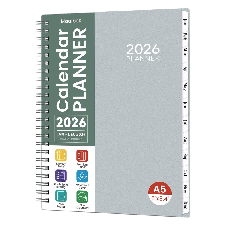 2026 Planner- 2026 Planner Weekly and Monthly, Jan. 2026 - Dec. 2026, A5(6" x 8.4"), Jan. 2026 - Dec. 2026, Teacher Student Organizer, 2026 Calendar Planner Book with Tabs, Ideal for Office School Supplies, Grey