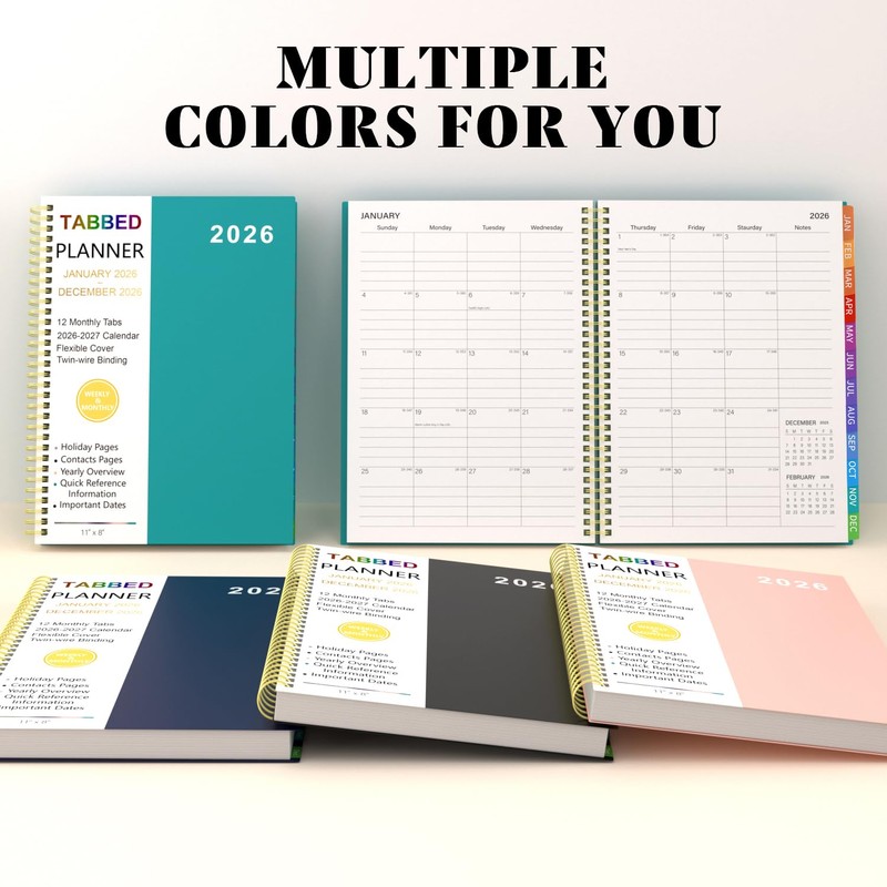 2026 Planner Weekly and Monthly - From January to December 2026, A4 Spiral Binding Agenda with Monthly Tabs, Wirebound, Pocket, 100Gsm Thick Paper (8.5" x 11")