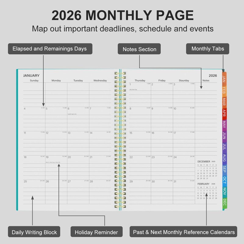 - 2026 Yearly January to December Professional Planner - With 12 months of monthly and weekly pages for easy planning and scheduling, large size is also comfortable to carry and use, making your life more effective