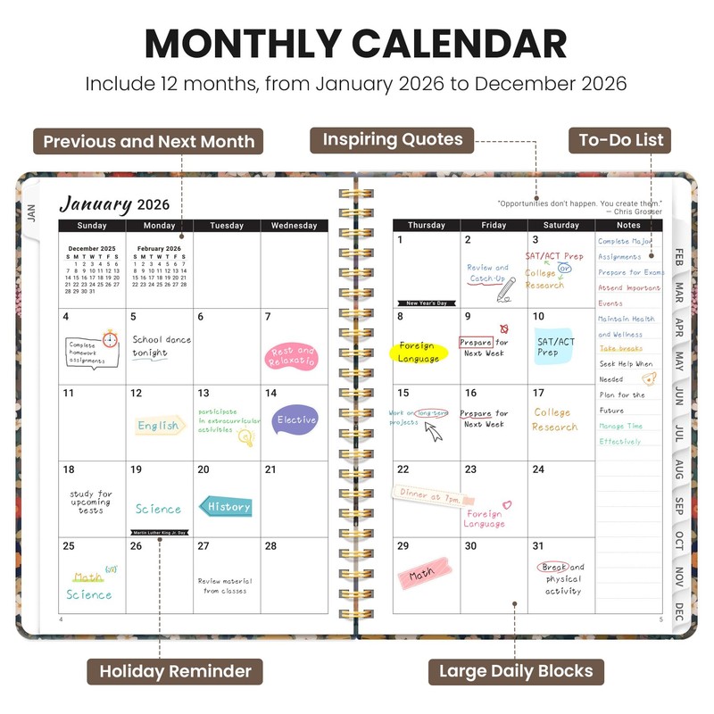- Versatile for All: Perfect for students, teachers, professionals, and homemakers alike, this 2026 planner meets the diverse needs of any busy individual. Use it to manage school assignments, work projects, family events, and personal goals—all in one convenient place.