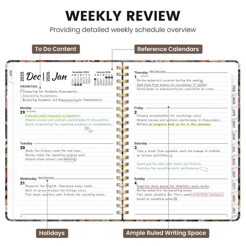 - Thoughtful Touches: ZOTIA's 2026 planner is equipped with thoughtful details that enhance your planning experience. An elastic band keeps it securely closed, while monthly tabs allow for quick navigation. A clear double-sided pocket provides extra storage for notes or reminders.