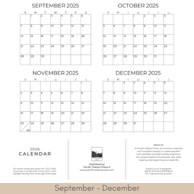 - High quality and durable our 12” x 12” 2026 nature wall calendars are made with thick, high-quality gloss paper designed for a smooth writing experience. The durable pages resist smearing, feathering, and ink seepage, ensuring your notes stay crisp and clean. Whether you’re using pens or pencils, this calendar will look great and last beautifully until the very last day!