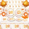 202Pcs Thanksgiving Disposable Tableware Set Orange Party Decorations Serve 24 Paper Plates Napkins Cups Maple Leaf Balloons Banners Plastic Tablecloths dinnerware for Fall Thanksgiving Party Supplies