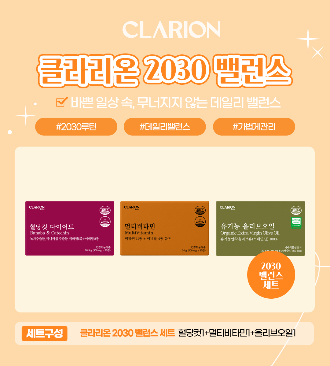 클라리온 2030 밸런스 3종 세트 (혈당컷 다이어트 + 멀티비타민+ 올리브오일)