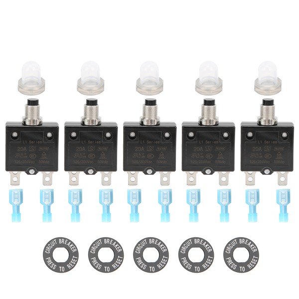 20A Overload Thermal Circuit Breaker with Quick Connect Terminals Waterproof Cap Push Button Manual Reset