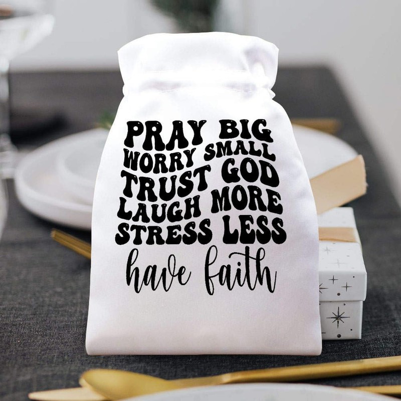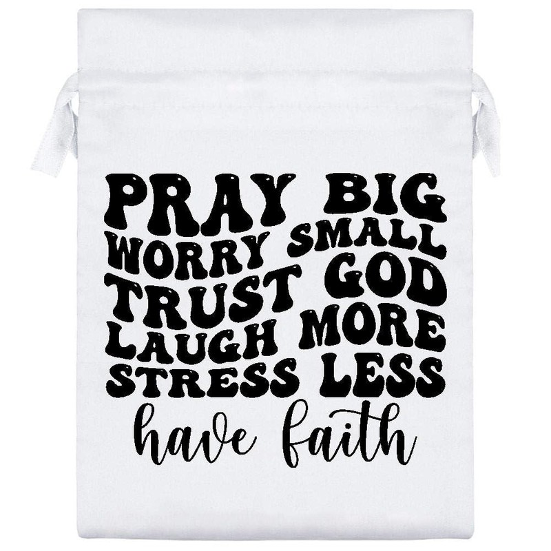 20cm 'Pray Big Worry Small Trust God Motivation' Satin Drawstring Bag/Pouch (SB00111095)