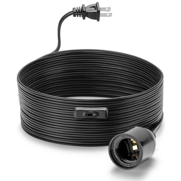 20Ft Extension Hanging Lantern Cord - Black, E26 Light Bulb Socket with Cord, On/Off Switch, Polarized Plug, UL Approval Pendant Light Cable with Socket (No Bulb)