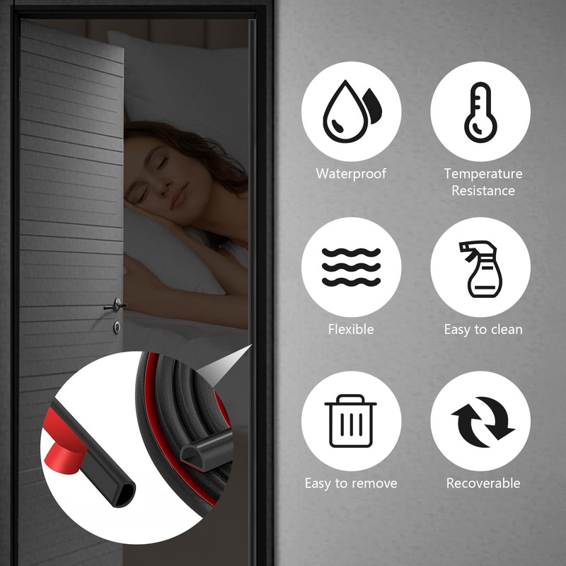 - 【D-shaped Design】The weather strip adopts a unique D-shaped acoustic hole design, which not only enhances the acoustic effect, but also effectively blocks the intrusion of dust other tiny particles. This design is especially practical at the door and window seams, helping to enhance the quietness and tidiness of the indoor environment.