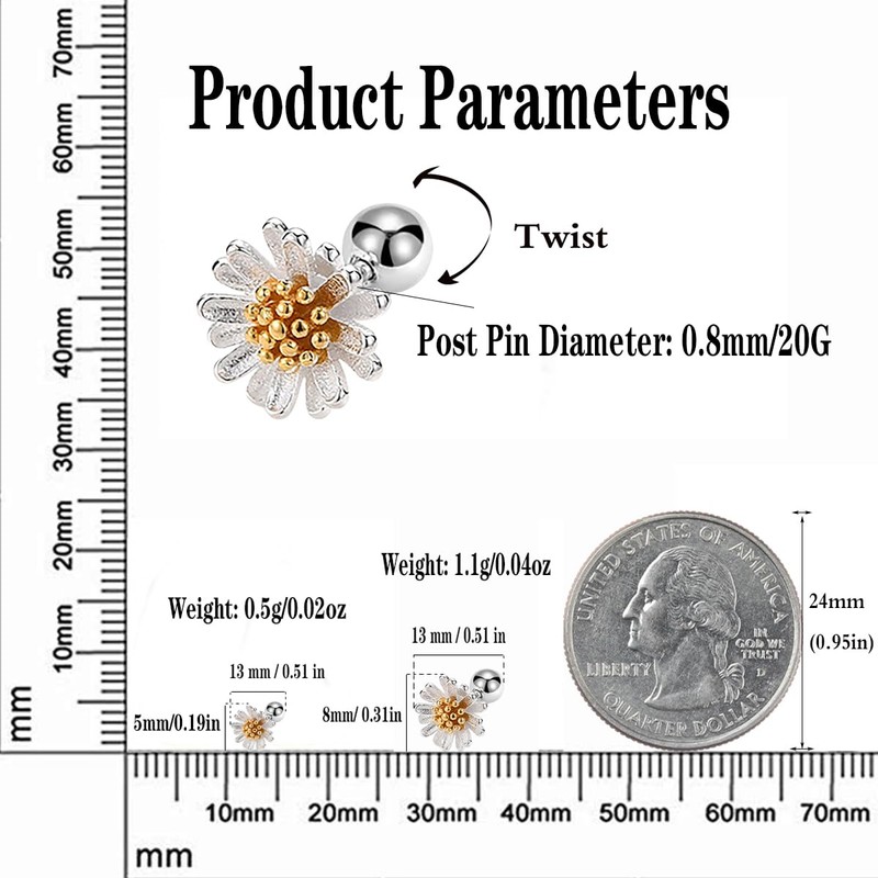 - SIZE & STYLE: Earrings Height: 5-8mm (0.2-0.31in), Earrings Width: 5-8mm (0.2-0.31in). Cute Flower Small Stud Earrings