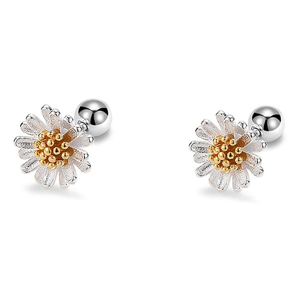20G Tiny Cute Daisy Flower Earrings for Women 925 Sterling Silver Small Ball Screw Back Stud Cartilage Tragus Post Minimalist Floral Dainty Birthday Mother's Day Jewelry Gifts (Yellow Daisy, 5mm)
