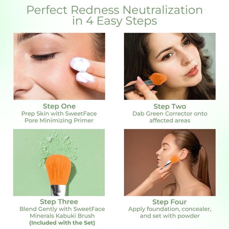 - 【 NEUTRALIZES REDNESS INSTANTLY 】: Sweetface Minerals green corrector is your go-to solution for tackling redness. Whether it's from acne, rosacea, or scars, the highly pigmented formula effectively neutralizes red tones, giving you a smooth and even complexion.