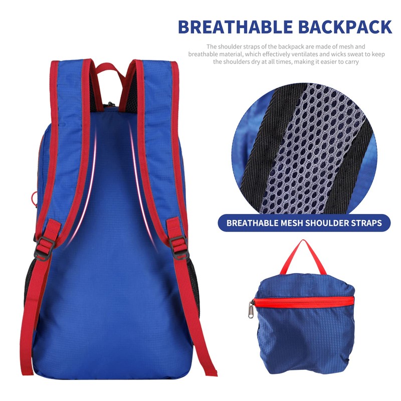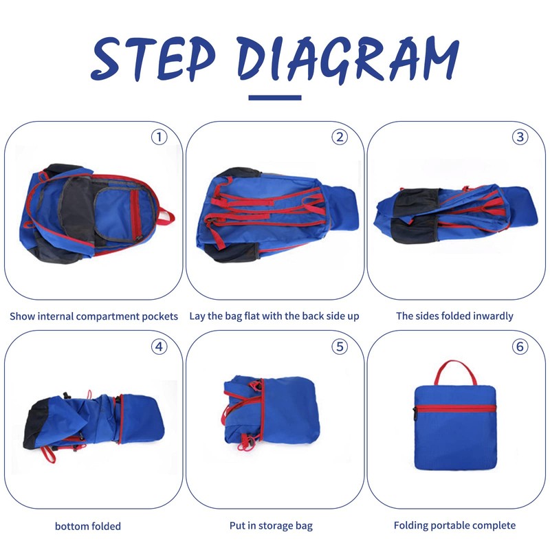 - Foldable Design The foldable backpack adopts an ultra-light design. When folded, it is only the size of a sachet. It can be stored in any place such as a travel bag, a carry-on bag or the corner of a suitcase. It is easy to carry and does not take up space.