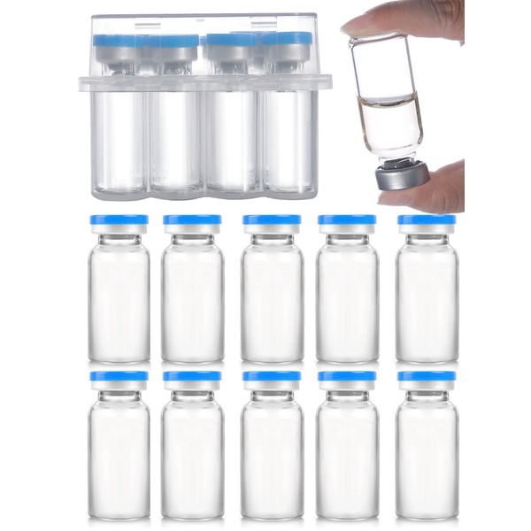 20ml Glass Vials for Injections, Self-Healing Injection Port, Sterile Empty Vials for Injections with Sealed Cap (10 Pack)