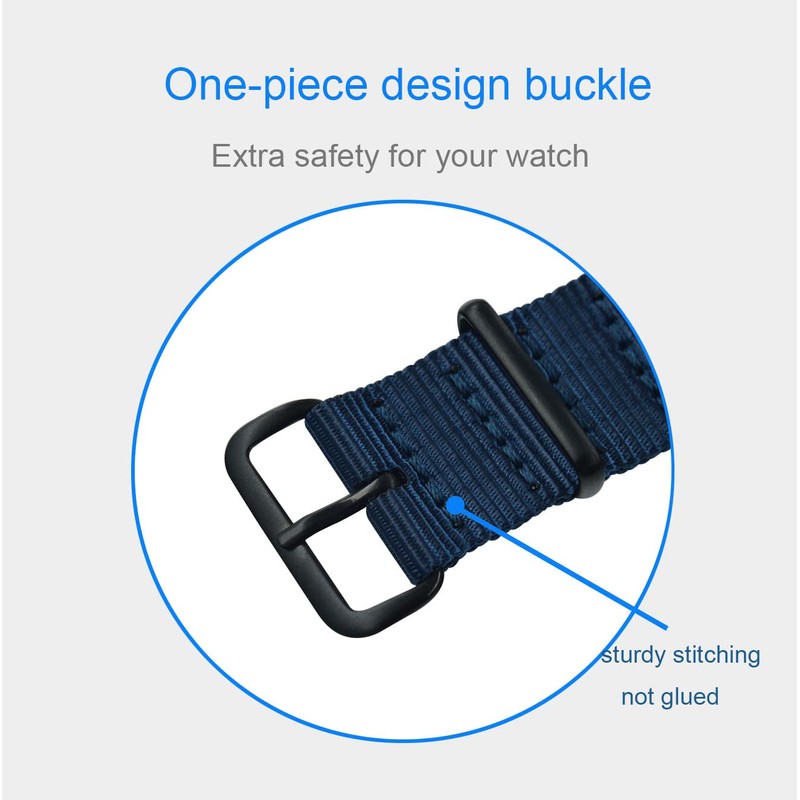 - BUCKLE: Matte black finish buckle with one piece design, add extra security for your watch. The double hardware loops can hold the excess portion of the strap. This nylon watch strap is lighter and breathable to wear than other type watch bands.