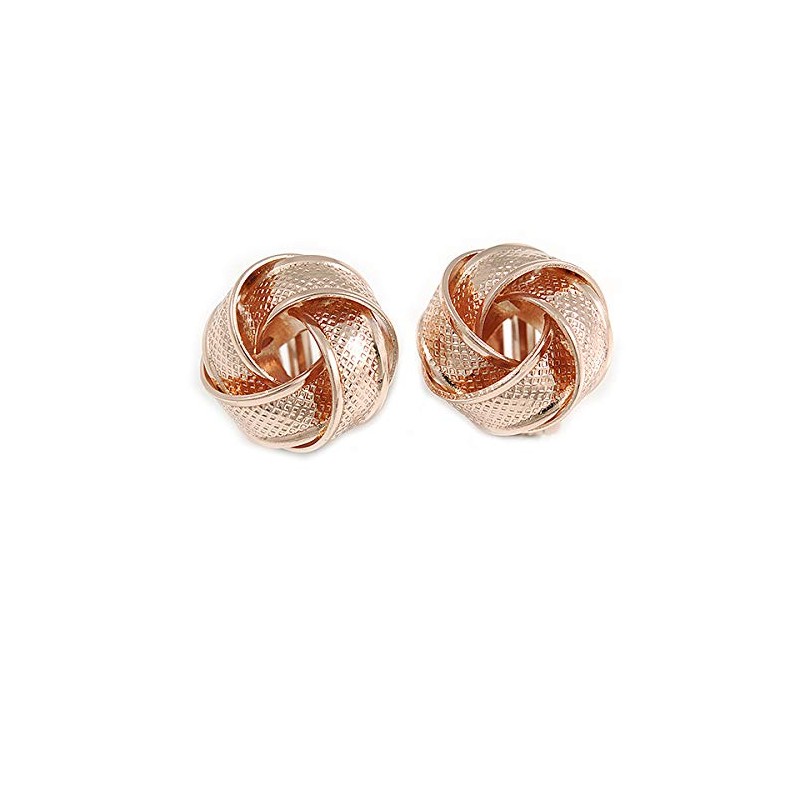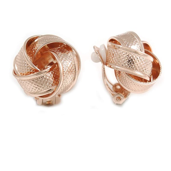 20mm D/Rose Gold Tone Textured Knot Clip On Earrings
