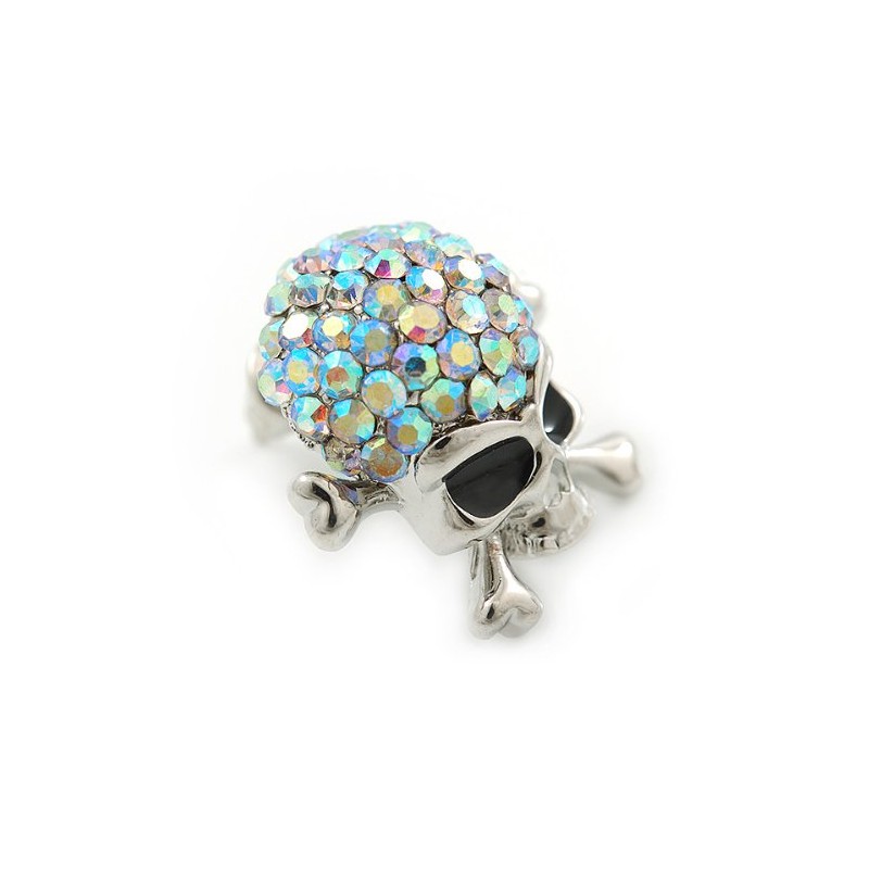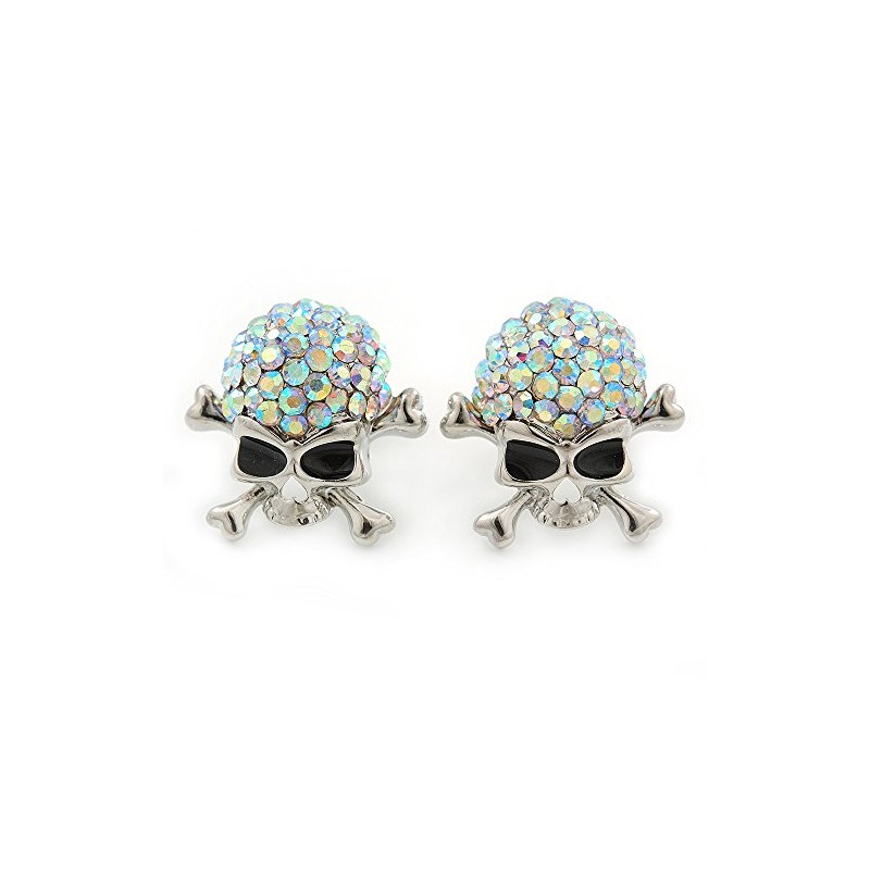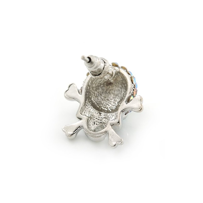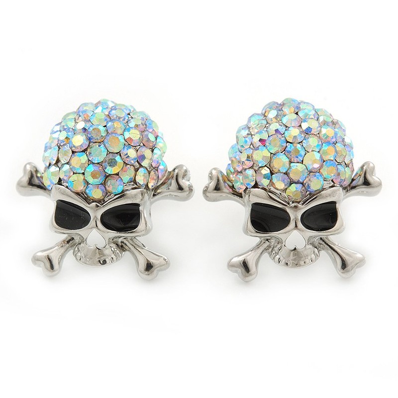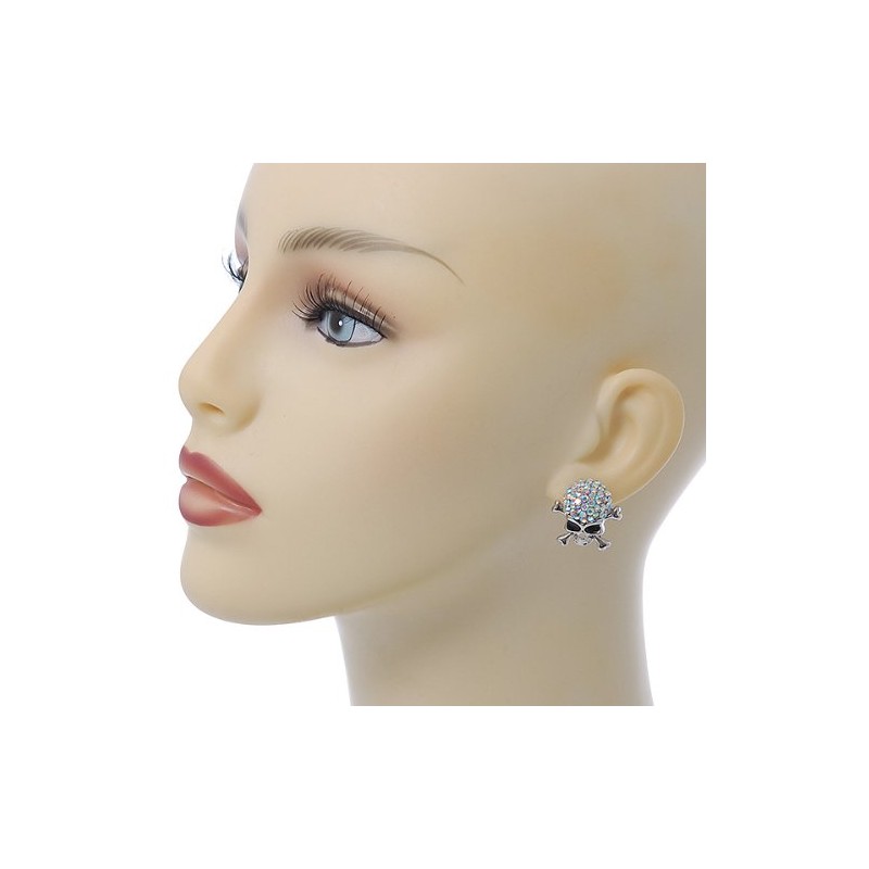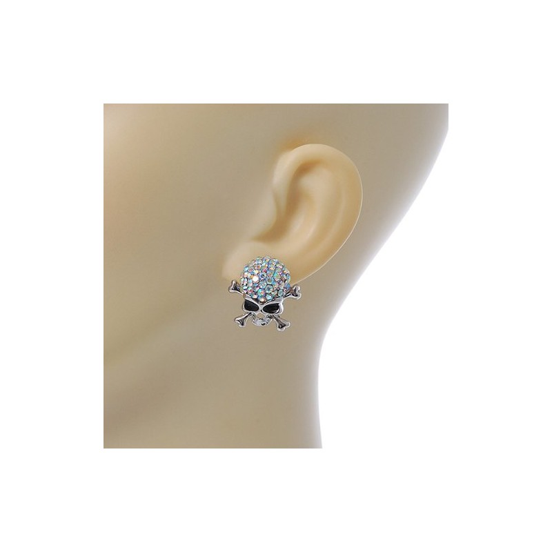 20mm L/AB Crystal Skull & Crossbones Stud Earrings/Silver Tone