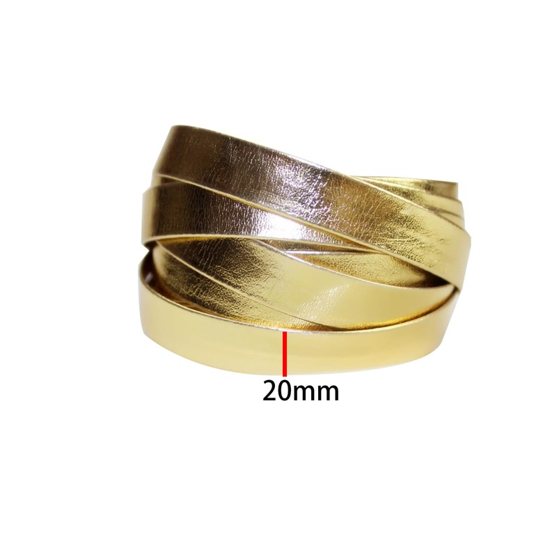 20mmx5m Metallic Leather Strip Double Sided PU Faux Leather Strap for DIY Crafts Making, Gold