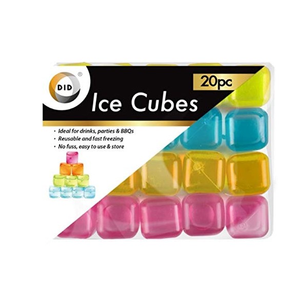 20pc ice Cubes Plastic Assorted Multicolour Reusable Pieces