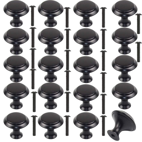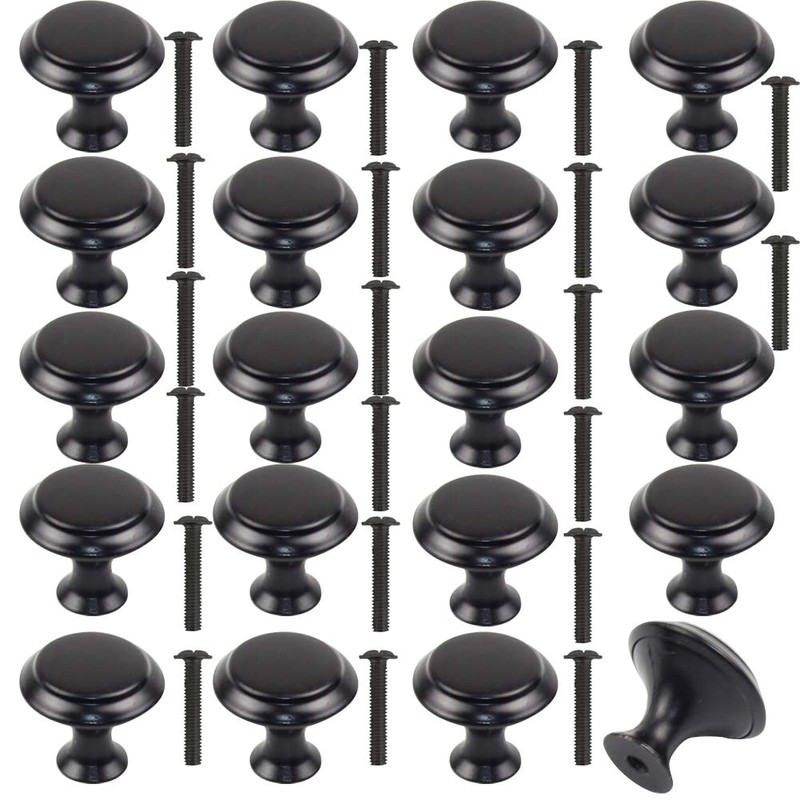20Pcs 30mm Black Cupboard Knobs Door Knobs Kitchen Cupboard Handles Mushroom Drawer Knobs Cabinet Knobs Round Pull Handles Cupboard Handles with 20 Screws for Furniture Wardrobes Bathroom Bedroom