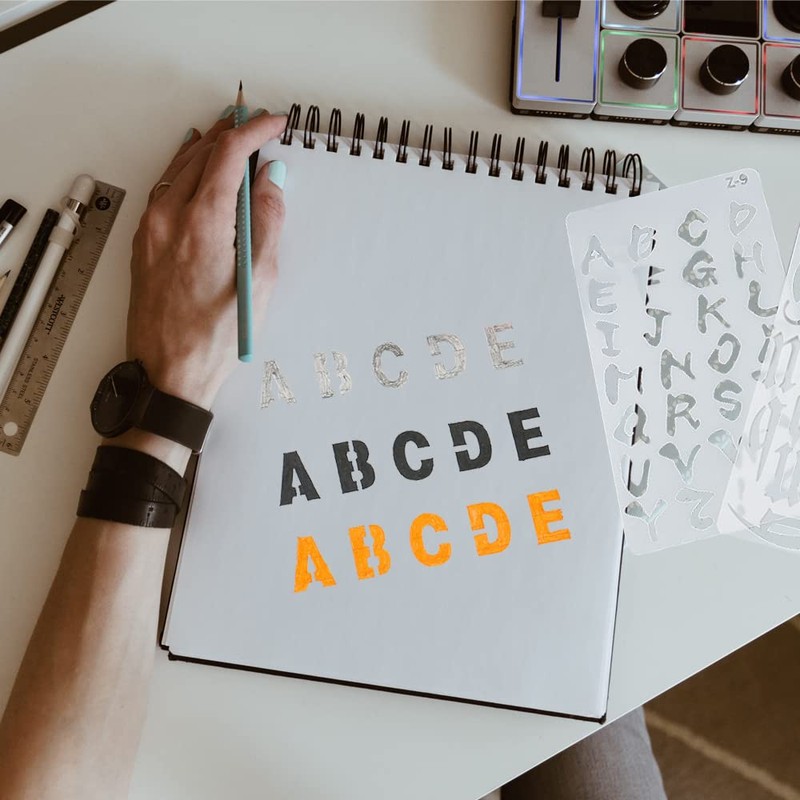 - 【EXQUISITE WORKMANSHIP】This stencil font templates for journal, notebook, diary is made with exquisite workmanship. With blunt edges and pinpoint shapes, it won't hurt your hands and help you to paint complete beautiful creations.
