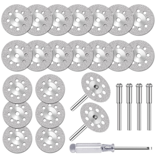 - Size: 20 x diamond cut off wheel diameter: 22mm; Thickness: 0.6mm; 4 x Mandrel diameter: 3.0mm; 1 x Screwdriver: 98mm.