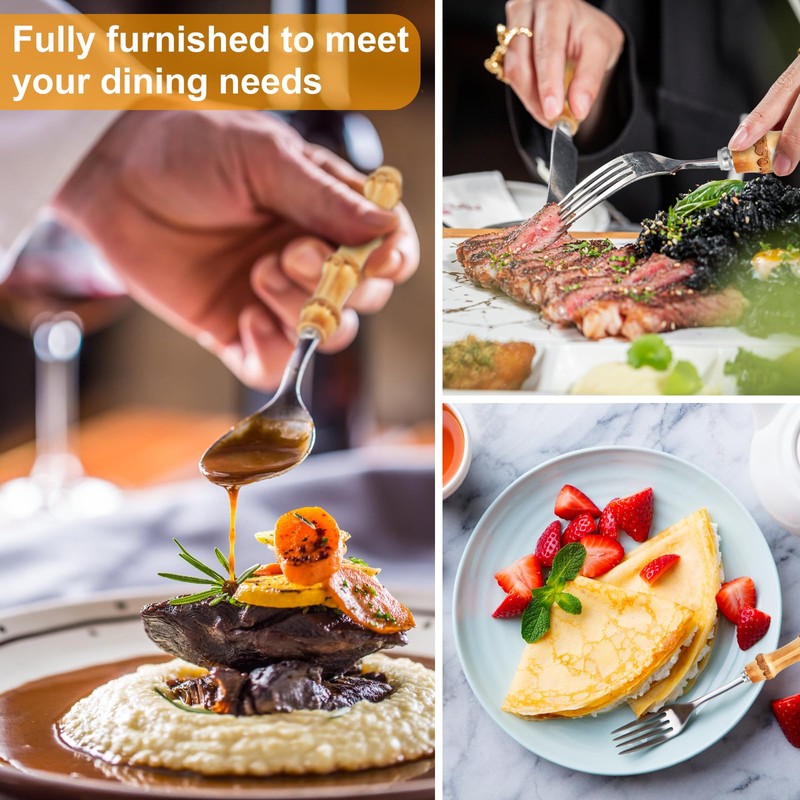 - 🍴【Rich Quantity】You will receive 20 pieces of bamboo cutlery, 4 dessert spoons, 4 dessert forks, 4 dinner spoons, 4 dinner forks, 4 dinner cutters, plenty of quantity to meet your daily use and replacement needs.