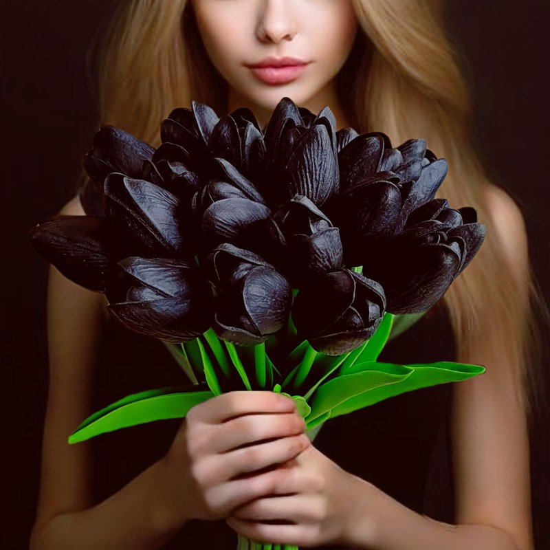 20pcs Black Flowers Artificial Silk Tulips Fake Flowers 13.5" for Birthday Party New Year Spring Easter Mother's Day Valentine’s Day Wedding in Bulk Home Garden Office Decorations