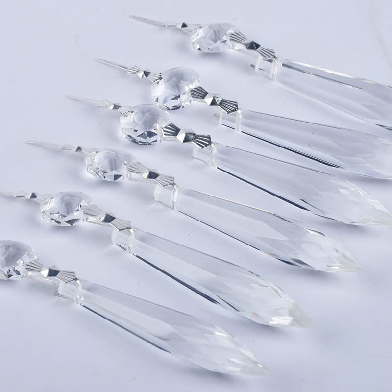 20Pcs Chandelier Icicle Crystal Prisms with Bead Crystals Lighting Lamp Replacement Parts (63mm, Clear)