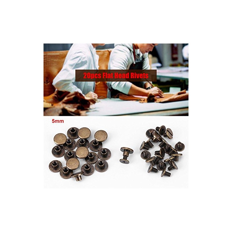 20Pcs Chicago Screw Posts for Leather, Flat Leather Rivets Assortment Kit for Purse, Belt, Collar, Luggage, Backpack(5mm)