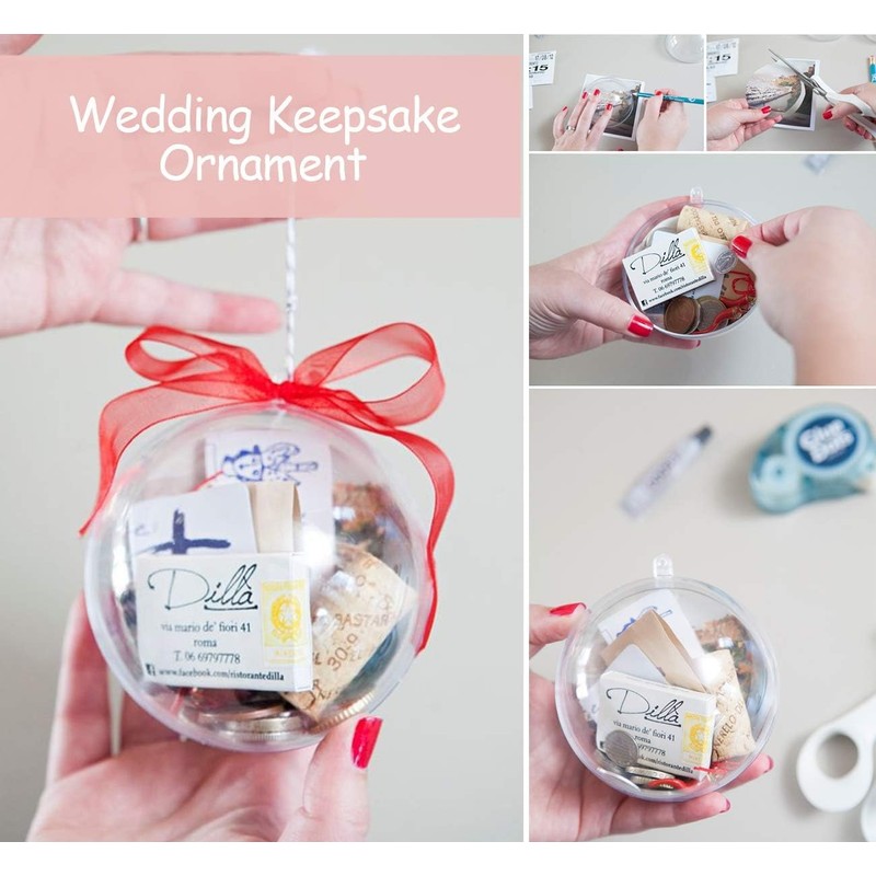 - Perfect Decoration: A small Christmas tree ball where you can express your blessings to friends, teachers, and parents. These small fillable balls can be filled with flowers, pebbles, and other things. You can also put candy and other small Dim sum in it, and put small things in it. Decorated with beautiful bows and ribbons outside, it is a perfect personalized gift, and these plastic balls are suitable for any occasion.