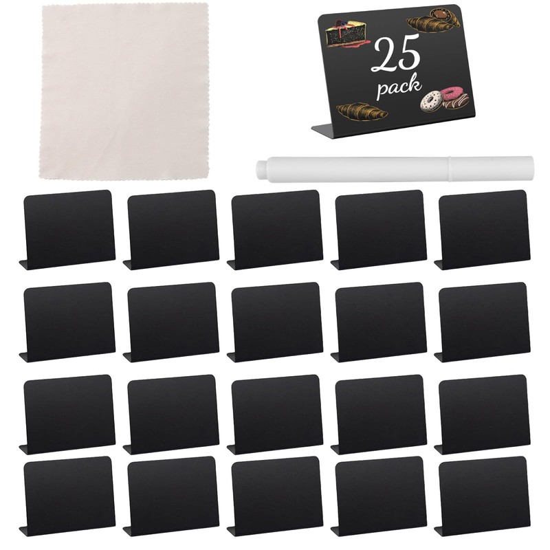 All-in-One Kit: Includes 20 mini chalkboard signs, one marker, and one cleaning cloth