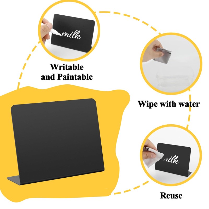 - 【Durable】Made from high-quality PVC, these food labels for buffet are built to last. The sturdy base that resists bending and cracking, ensuring mini chalk boards can withstand frequent use at various events. The smooth, non-porous surface also offers superb resistance to scratches and wear.