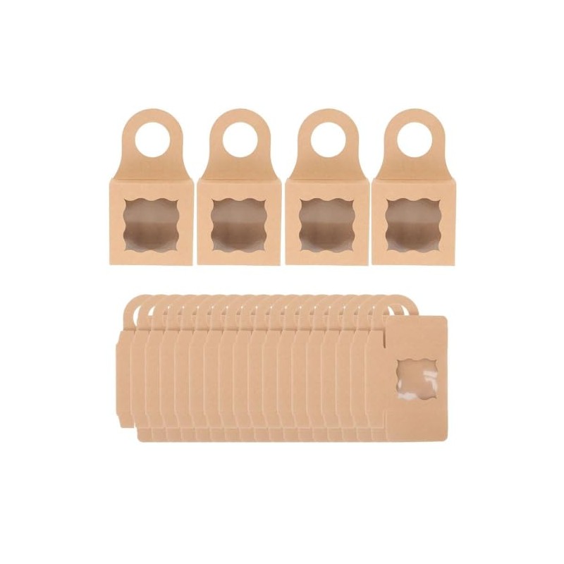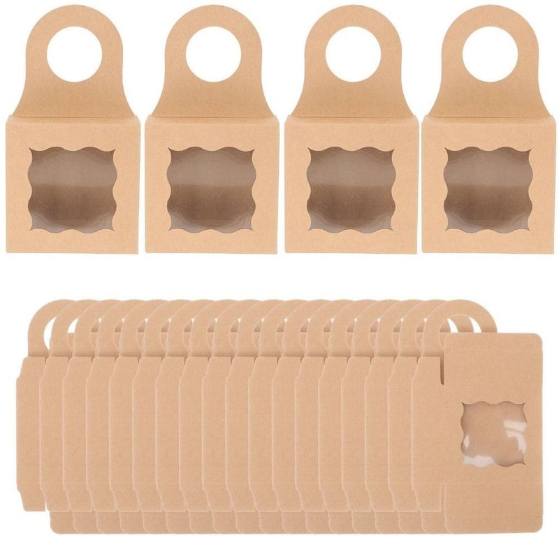 20pcs Kraft Paper Wine Bottle Box with Window, Hanging Foldable Wine Window Boxes Gift Boxes for Gifts Empty Wine Bottles Party Favor