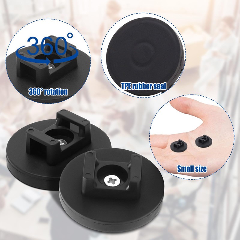 - High Performance: Black magnetic wire management base is a practical accessory for fixing and organizing different wires and cables, which can reduce cable debris and bring you a clean environment. The magnet base is designed with protective rubber, which can improve the lateral bearing capacity, and protect the positioning surface from scratches.