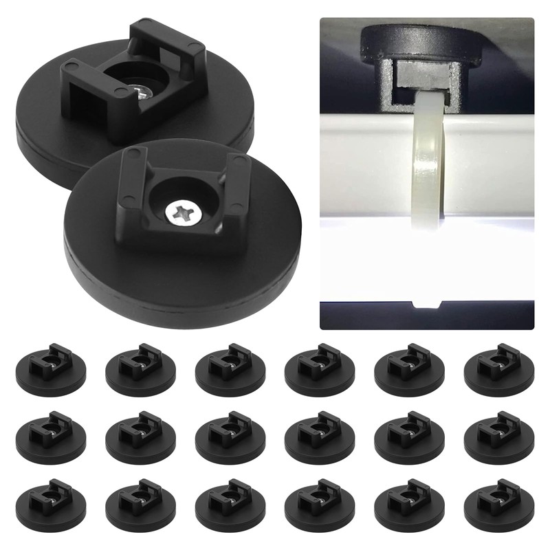 20pcs Magnetic Cable Zip Tie Mounts, 43mm Base Magnetic Wire Cable Holder for Cable Wire Organization, Magnetic Wire Management Bases - Pulling Force 8.5kg